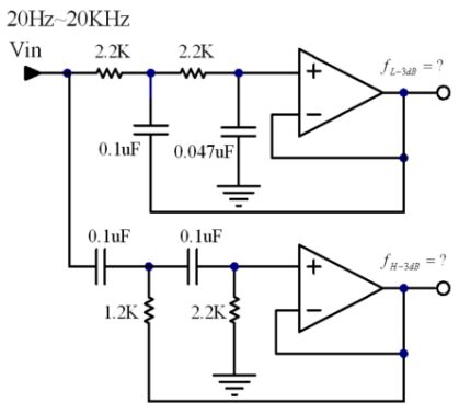 55. 電子分音器若採用一階二音路濾波器,則其共通的-3dB 點之頻率落在(A)400Hz (B)1KHz (C)2KHz (D)3KHz 。