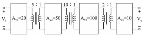 96. 如下圖電路所示,為變壓器耦合串級放大電路,則此電路之總電壓增益A