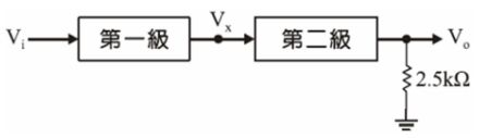 99. 如下圖電路所示,為一個串接放大器若輸入電壓 Vi=10μV,下列敘述何者正確?
