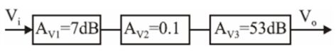 (A)總電壓增益為 100 (B)輸出電壓 Vo=1mV (C)總電壓增益為60dB (D)AV 2=-20dB 。