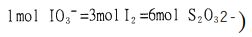 26. 將 0.1110 克的碘酸鉀(分子量=214.0)溶於水中,加入過量的碘化鉀,並以鹽酸酸化。將此溶液標定硫代硫酸鈉溶液,共需 41.64mL 的硫代硫酸鈉溶液,則硫代硫酸鈉溶液的濃度為多少 M?(已知在滴定過程中之計量關係如下: