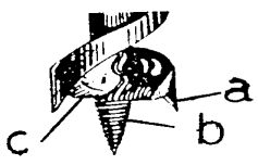 (A)旋入木理 (B)剷去木屑 (C)定中心 (D)割斷木理 。