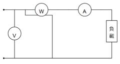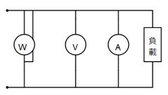 56. 以電壓、電流及電功率計測量時,下列何圖為正確?(A)