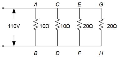 75. 有一電壓為 110 伏特之電路,電流為 5 安培,則此電路的電阻為 (A)22 歐姆 (B)25 歐姆 (C)30 歐姆 (D)35 歐姆 。