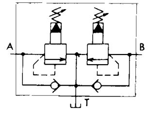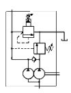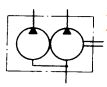 左圖為 (A)兩段泵 (B)雙連泵 (C)複合泵 (D)壓力補償式可變排量型泵之符號。
