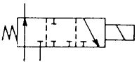 左圖係表示換向閥之作動方式為 (A)機械式 (B)人力式 (C)引導壓式 (D)電磁式 。