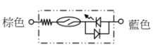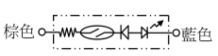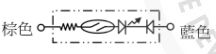 103. 有個二線式附 LED 之磁簧開關的內部迴路如下,何者在感測時感測器會導通,同時 LED 燈亦會亮?(A)