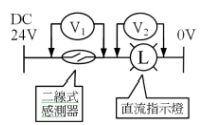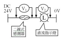 105. 下圖之電路圖,當二線式感測器有感測到物件時,電壓表 V1、V2顯示為何?