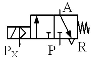 (A)二級壓力放大器 (B)直動式 3/2 彈簧歸位電磁閥 (C)內導式 3/2 彈簧歸位電磁閥 (D)外導式 3/2 彈簧歸位電磁閥 。
