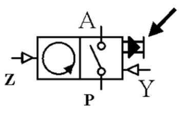123. 如下圖,為氣壓之計數器,P:輸入口、A:輸出口、Y:復歸用接口、Z:計數用接口,箭頭所指部位為