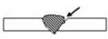 如左圖箭頭所指之缺陷是 (A)夾渣 (B)銲蝕 (C)搭疊 (D)滲透不足 。