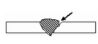 如左圖箭頭所指之缺陷是 (A)夾渣 (B)銲蝕 (C)搭疊 (D)滲透不足 。