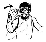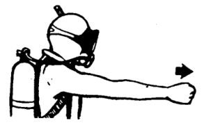 (A)100 公尺內有人 (B)潛水員注意請速回船 (C)請避開通過 (D)潛水員水下工作中,請保持距離,慢速通過 。