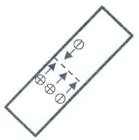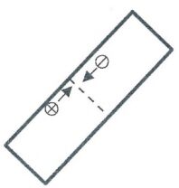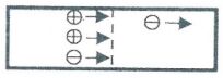 1 在真空中有帶正、負電荷的粒子,⊕代表一單位的正電荷, 代表一單位的負電荷,這些電荷均以相同的速率移動,箭頭代表移動方向,如圖所示。下列何者通過虛線截面的電流值最大? (A) (B)(C)(D)