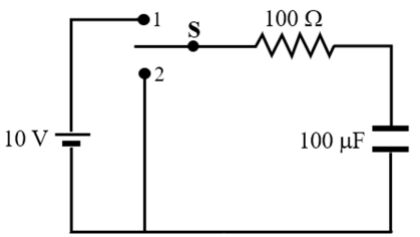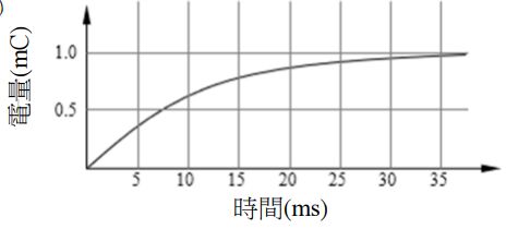 16 如圖所示為一個 RC 電路,其中 S 為切換開關。將開關切到 1 停留足夠時間,將電容器充飽。然後切到 2,則切到 2 之後,電容器兩端所儲存的電量變化為何? (A)(B) (C)(D)