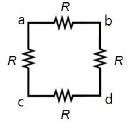 12 如圖的線路中,從 a 點與 b 點分別拉出導線,其等效電阻為 Rab;從 b 點與 c 點分別拉出導線,其等效電阻為 Rbc。Rab 與 Rbc 之比為下列何者?
