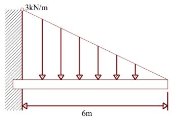 5.有一懸臂梁受分布載重如圖,不計梁之自重,求梁在固定端處之彎矩(kN-m)?