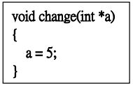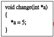 46. 有一個 C 語言的主程式如下: 請問哪一個 change()函式版本可以正確改變主程式中變數 x 的值。(A)(B)(C) (D)