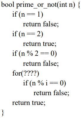 28 下列函式為檢測一個整數是否為質數,有關第 8 行 for(????)程式,下列何者正確?