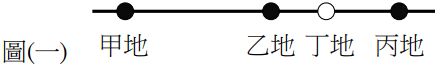 3. 如圖 ( 一 ) 所示,小強騎著腳踏車沿直線運動,道路里程標誌顯示小強從甲地里程數為12.0公里處出發,經乙地里程數為38.4公里到丙地里程數為61.2公里後,折返至丁地里程數為 48.0 公里處,共花了5.0小時才休息。計算小強的平均速度為多少? (A) –3.4公尺/秒 (B) 2.0公尺/秒 (C) 8.0公里/小時 (D) 12.0公里/小時