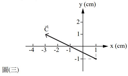 6. 如圖(三)所示,位移向量的起始點為( 1,–1),則下列何者為位移向量? (A) ( 1, – 3 ) cm (B) ( 2,–4) cm (C) ( –3,1) cm (D) ( – 4,2 ) cm