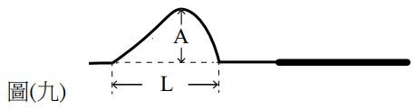 26. 如圖 ( 九 ) 所示,有一細繩的脈波自左往右前進,其中 A 為振幅、L 為波長;此繩波經過粗細繩交接點後,粗繩產生一前進的繩波,細繩也有一繩波往左返回。關於粗繩繩波與 細繩上的反射繩波之敘述,下列何者正確?(粗繩線的單位密度值較細繩大)(A) 粗繩繩波振幅與波長均比A與L小 (B) 粗繩繩波振幅比A小,波長與L相同 (C) 細繩反射繩波振幅與波長均比A與L小 (D) 細繩反射繩波振幅與A相同,波長比L小