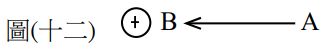 34. 如圖(十二)所示,在一正電荷建立的電場中,有一帶3庫侖電量的正電荷等速由A點移動到B點,作功18焦耳,若A點的電位為VA,B點的電位為VB,則下列敘述何者正確? (A) VA-VB為– 6伏特 (B) A點的電位能為18焦耳 (C) B點的電位能為18焦耳 (D) 此移動過程為靜電力作正功