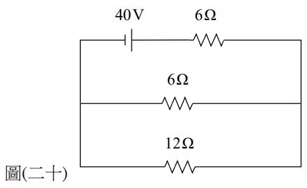 50. 如圖 ( 二十 ) 所示,小明以伏特計量測出12歐姆電阻兩端之電位差應為多少伏特?(A) 10(B) 16(C) 20(D) 24