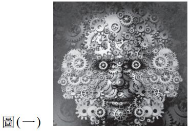 3. 圖 ( 一 ) 運用大小不一的齒輪密密麻麻的堆疊,以顯現人臉的立體樣貌,此使用創作要素中的何種元素作為作品的設計重點? (A) 質感、形態 (B) 線條、質感 (C) 形態、空間 (D) 空間、線條