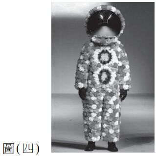 9. 臺灣設計師江奕勳畢業製作尋找靈感時,偶然看到城隍廟慶典佈滿傳統的罐頭塔花圈,便與當時熱映的太空人電影做結合,創作了「航向月球」系列作品如圖 ( 四 ) ,此創作屬於下列何種靈感啟發? ①敘事設計 ②文化表徵 ③生活啟發 ④時事議題 ⑤靈光乍現(A) ①②④ (B) ②③⑤ (C) ②④⑤ (D) ①③⑤