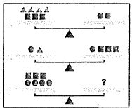 23. 若(1)與(2)相等,則(3)需要幾個△才能平衡?(A)10 (B) 11 (C) 12 (D) 13