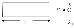 7. 如圖所示,一聲源 S 在靜止時發出波長λ0之聲波,當其以速度 v 朝向一長度L的單口管移動時,可在管內形成 6 個波 節之駐波;而當聲源 S 反向以同速率飛離該管時,可在管內形成 5 個波節之駐波。則 = ___________________。