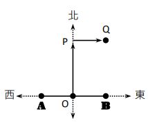 24. 有一標點 O 的東方及西方 360m 處,各有一無線電發射塔 A、B,兩者向周圍發出相同頻率的無線電波,某人拿著偵測器從標點 O 向此方移動,發現偵測器強度都顯示為極大,當移動了 960m 後,該人就轉向東方移動,此時偵測器強度逐漸減小到零,再逐漸增大,當移動了 360m 時,強度再次顯示為零。試求該無線電波的波長