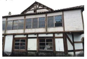 8.昕昕一家人報名參加花蓮文史走讀課程,途中經過一處文化聚落(如右圖),老師說明此建築形式可分為大阪式與廣島式兩種,當時日本政府需要尋找大量的勞力人口來協助農業生產,台灣某族群的遷徙帶來龐大的家族人力、團結與刻苦耐勞的精神,恰巧符合此種產業製程的勞動力需求,當時此種農業作物甚至被稱為「綠金」。請問上述聚落應指何者?(A)豐里村(B)昭和村(C)千歲村(D)林田村