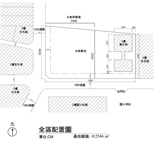 一、題目:鄉公所行政大樓設計二、題旨:臺灣部分地方鄉鎮公所建築已到達使用年限,並且不符合當今服務之需求,必須進行改建。公共建設的完善程度攸關地區居民生活環境品質,而地區性行政中心完備情形,亦直接關聯地方上之完整、有效率之公共服務,因此,近年來為優先改善必要之公共環境設施,以均衡城鄉發展,並強化政府服務效能。三、基地環境:(詳全區配置圖)基地位於都市計畫外,南部某縣沿海鄉行政區內,基地範圍原有公所本棟及民政課調解會、代表會及檔案室等,梯形基地之建蔽率為 50%,容積率為 250%,鄰近菜市場、國小、衛生所等,為街區熱鬧聚集之點。沿10 公尺與 12 公尺道路各退縮 5 公尺之人行道。四、空間需求:員額編制及員工辦公面積配置情形:該所編制員額為 90 人,實際使用員工人數約 100 人,除依「辦公處所管理手冊」規定規劃外,另依該所實際辦公人數及洽公人數等空間配置規劃,另將災害應變中心、選務中心、災民收容中心等多功能場地納入空間規劃設計。(一)鄉公所需求:1.辦公室:每間可容 15 人之開放型辦公室共 7 間,中型主管辦公室 5 間(每間 25 m2),大型主管辦公室 1 間(35 m2)。2.小型會議室共 2 間(每間 80 m2)。3.大型會議室 1 間(200 m2)。4.儲藏室與檔案室共 15 間(每間 20 m2)。5.貴賓接待室 1 間(60 m2)。6.大禮堂 1 間(400 m2)。(二)鄉民代表會需求:1.鄉民代表會辦公室共 12 間(每間 25 m2)。2.鄉代表主席辦公室 1 間(30 m2)。3.會議室共 3 間(每間 30 m2);大會議室 1 間(60 m2)。(三)其他如廁所、樓梯、電梯等請合理配置。五、設計課題:1.地下室停車位須符合法規要求,建議至少 20 部汽車停車位,1 部無障礙汽車停車位,機車停車位與無障礙機車停車位若干。2.建築配置須考慮永續節能之設計策略。3.滿足設計法規,如步行距離、無障礙設計需求等。4.合理結構系統設計。5.其他災害應變課題請自行規劃安排於室內外空間。六、建築設計:(一)建築計畫說明,至少包括:(30 分)1.建築配置之重要概念,及對應氣候與周圍社區之對策。2.基地內之建築外部空間景觀設計對策。3.主要空間之定性定量及各機能空間之關係設定對策。4.合理耐震結構系統之對策。(二)設計圖說要求,至少包括:(70 分)1.配置圖含 1 樓平面圖,含景觀、鋪面植栽等,比例:1/200。2.至少 2 及 3 樓平面圖(標示重要尺寸)比例:1/200。3.任一向立面圖比例:1/200。4.任一向剖面圖比例:1/200。5.任一角度的建築外觀透視圖。