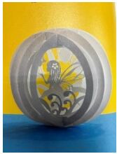 34. 玲玲在美術課堂上利用剪紙藝術設計一顆球狀裝飾吊飾(如右圖) ,請問玲玲的球狀吊飾運用了那些法則? ①去除法則②加成法則③替換法則④操縱法則。(A)①②③ (B)①② (C)②③④ (D)②④。