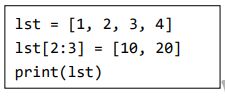 23. 下列哪一結果是以下 Python 程式碼的輸出? (A) [1, 2, 3, 4] (B) [1, 2, 10, 20, 4] (C) [1, 2, 10, 20, 3, 4] (D) [1, 2, 3, 10, 20, 4]