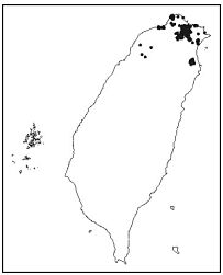 52.下圖所示是從專門收錄臺灣古文書的網站,透過大數據法則,檢索到某個地名用詞出現的次數分布圖(北部區域)。此地名用詞最可能是下列何者?(A)松(B)峎(C)壩(D)廣興