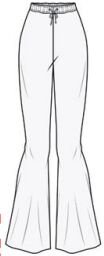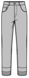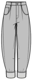 22. 現有倒三角形體型(肩平、寬且骨盆較窄),以下哪一種褲型在平衡此體型(上寬下窄)的 效果最佳? (A)(B)(C)(D)