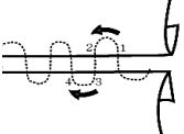27. 手縫針法如右圖示,以下敘述何者錯誤? (A)此針法稱為藏針縫 (B)此針法稱為階梯縫 (C)適用於倂聯結合兩層布 (D)適用於重疊結合兩層布