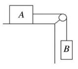 25. 如下圖所示,質量 mA = 10.0 kg 的箱子 A 放在水平桌面上,並通過一細繩繞過無摩擦滑輪與懸掛質量 mB = 12.0 kg 的箱子 B 相連。已知箱子 A 與 桌面之間的動摩擦係數為 = 0.20,且重力加速度取 g ≈ 9.8 m / s2。若釋放兩箱子使系統開始運動,請問箱子 B(亦即懸掛者) 以及箱子 A 的共同加速度約為下列何者?