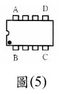 38.下圖(5)DIP IC頂視圖,第一支接腳位置在 (A)1腳 (B)B腳 (C)C腳 (D)D腳。