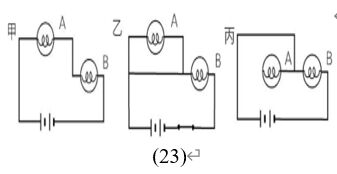247.如圖(23)在甲、乙、丙3個電路中,每個電路有A、B兩個燈泡,哪一組的A燈 泡是屬於斷路?(A)丙 (B)乙 (C)甲 (D)都不是