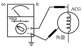 315.下圖為使用三用電錶檢查ACG方式之一,其結果是表示ACG線圈與外殼