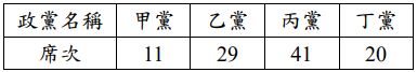 92. 某國國會議員共有 101 席,下表為 2024 年該國國會 議員選舉結果各黨所獲得的席次,由於沒有任何一黨 獲得過半席次,最後由甲黨與丙黨組成聯合內閣,並 由丙黨黨魁擔任實權的行政首長,閣員大多也兼任國 會議員,關於該國的政府體制,下列敘述何者正確?