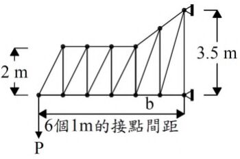 5. 有一桁架構造如右圖所示,當外力P = 50 kN時,則桿件b內的桿件內力值為何?