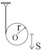 24. 如右圖所示,一繩索裹繞於半徑為r的圓柱體上,若圓柱體從靜止狀態被釋放 ,則當圓柱體下降距離達s時,其對圓心O點的角速度為何?
