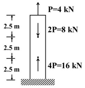 32. 有一軸向桿件之斷面積A = 150 mm2,材料彈性係數E = 200 GPa ,其受力如右圖所示,該桿件並未發生挫屈,則儲存於桿件內之軸向應變能U值為何?