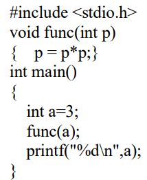 14. 執行下列C語言程式,輸出的值為何?(A) 0 (B) 3 (C) 9 (D)編譯錯誤