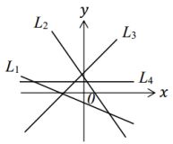 1. 如下圖,直線 L1、L2 、L3 、L4 的斜率分別為 m1、m2 、m3、m4 , 其中 L4 為水平線,試問何者值最小?